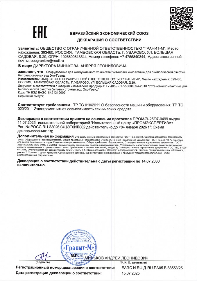 Гарантия выдается продавцом и изготовителем в соответствии с действующим законодательством Российской Федерации. На септик Евролос ЭКО 4 предоставляется гарантия сроком 60 месяцев со дня его ввода в эксплуатацию, она действует при условии эксплуатации в строгом соответствии с техническим паспортом. Гарантия на дополнительное оборудование устанавливается производителем данного оборудования.